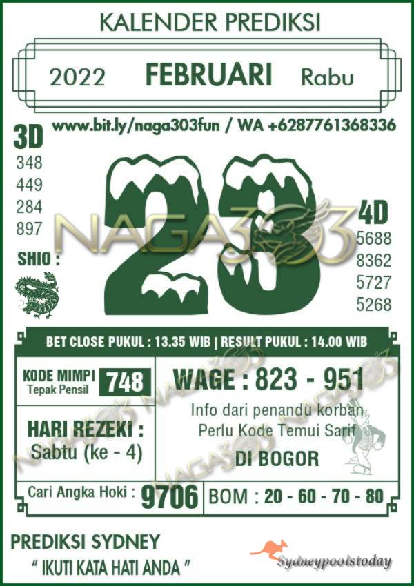 Prediksi Sydney Pools Rabu 23 Februari 2022