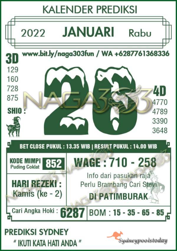 Prediksi Sydney Pools Rabu 26 Januari 2022