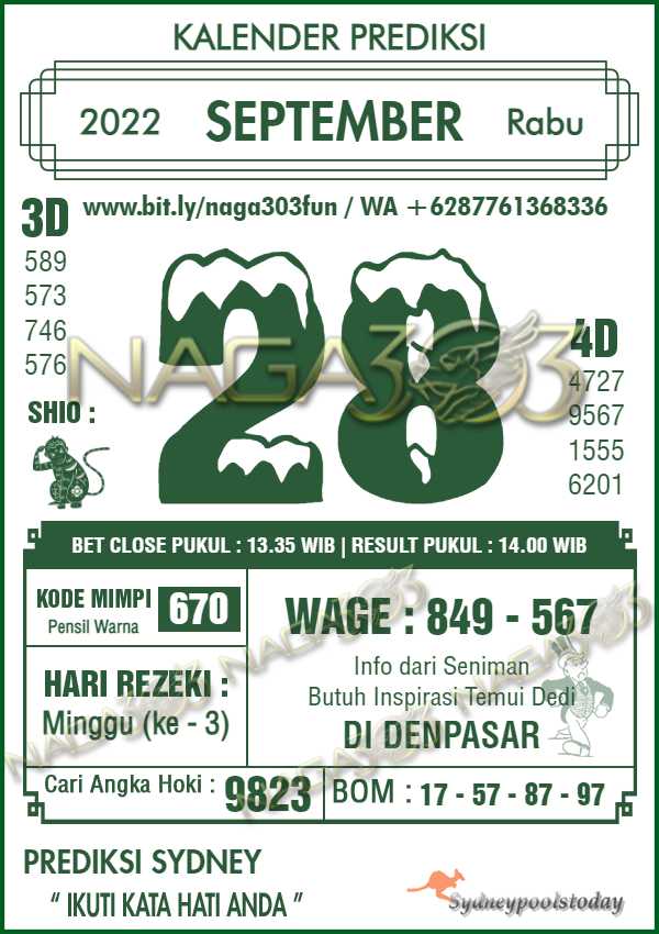 Prediksi Sydney Pools Rabu 28 September 2022 | Web Toto Naga303