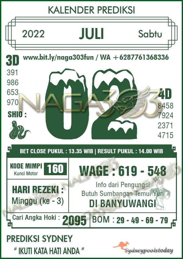 Prediksi Sydney Pools Sabtu 02 Juli 2022