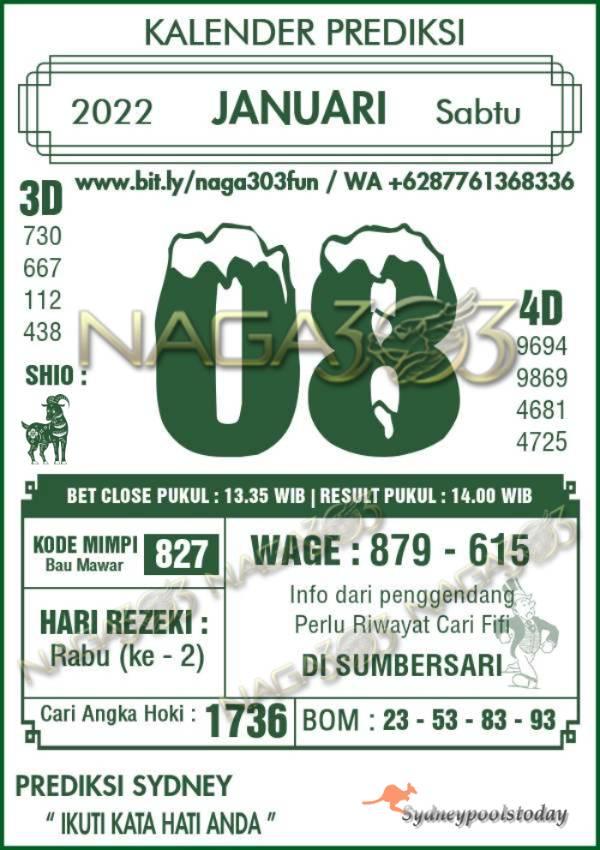 Prediksi Sydney Pools Sabtu 08 Januari 2022 | Web Toto Naga303