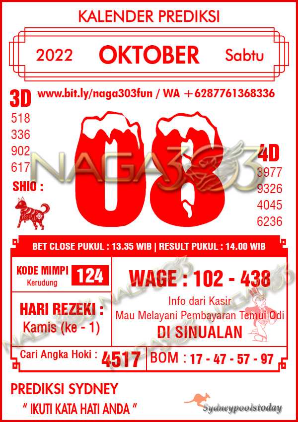 Prediksi Sydney Pools Sabtu 08 Oktober 2022