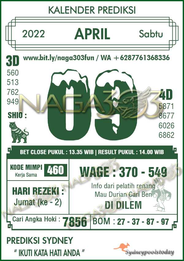 Prediksi Sydney Pools Sabtu 09 April 2022