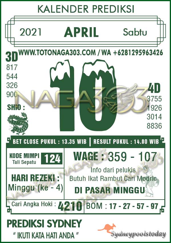 Prediksi Sydney Pools Sabtu 10 April 2021 | Web Toto Naga303