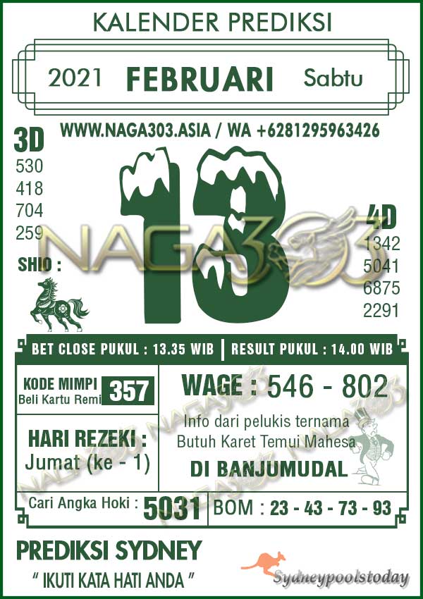 Prediksi Sydney Pools Sabtu 13 Februari 2021
