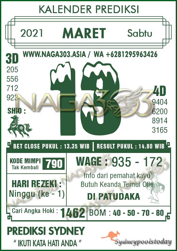 Prediksi Sydney Pools Sabtu 13 Maret 2021