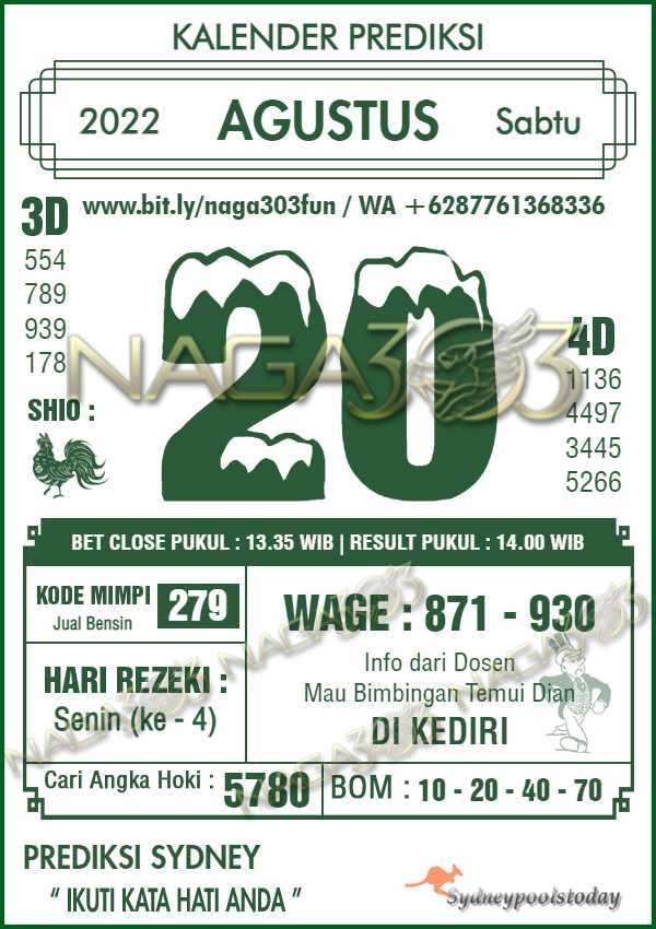 Prediksi Sydney Pools Sabtu 20 Agustus 2022