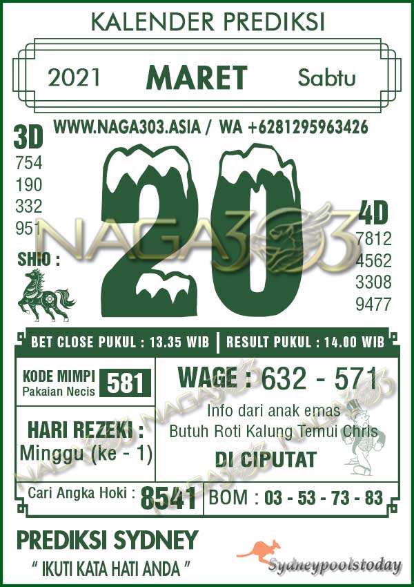 Prediksi Sydney Pools Sabtu 20 Maret 2021 | Web Toto Naga303
