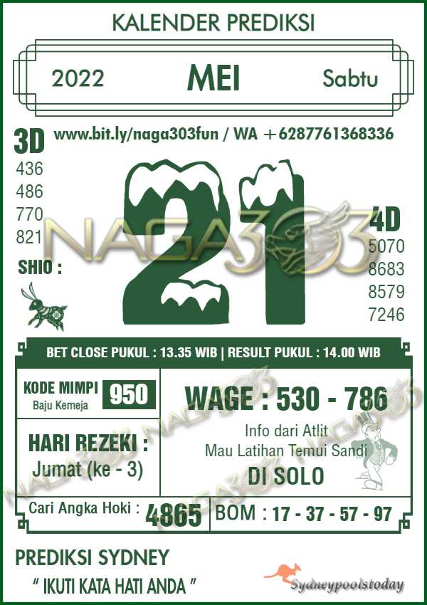 Prediksi Sydney Pools Sabtu 21 Mei 2022 | Web Toto Naga303