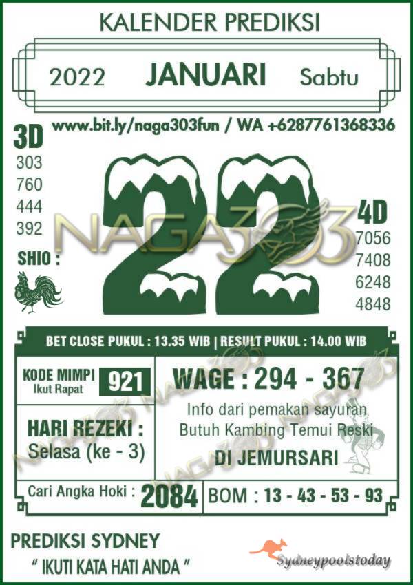 Prediksi Sydney Pools Sabtu 22 Januari 2022