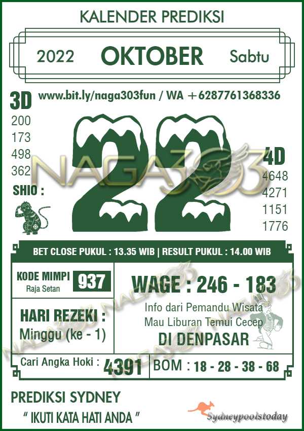 Prediksi Sydney Pools Sabtu 22 Oktober 2022 | Web Toto Naga303