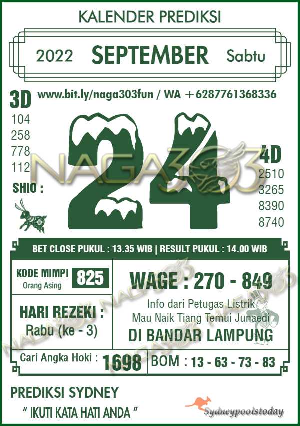 Prediksi Sydney Pools Sabtu 24 September 2022