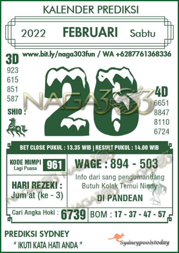 Prediksi Sydney Pools Sabtu 26 Februari 2022 | Web Toto Naga303