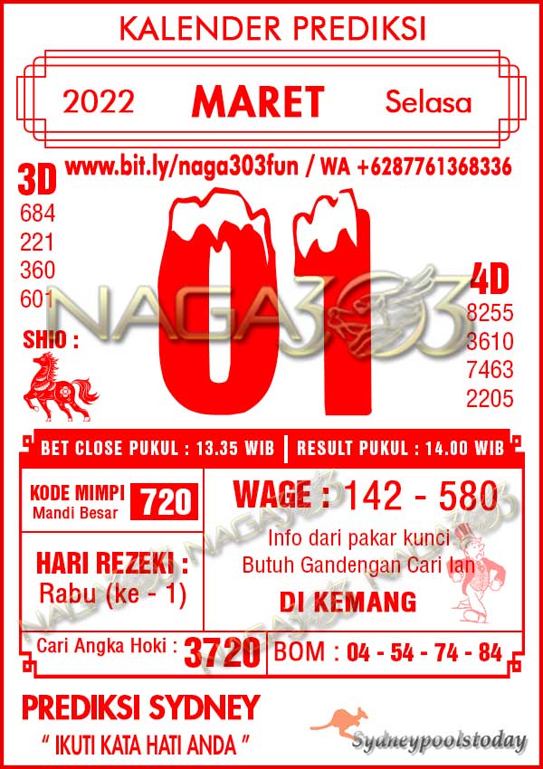 Prediksi Sydney Pools Selasa 01 Maret 2022 | Web Toto Naga303