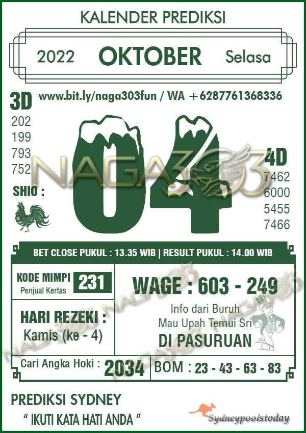 Prediksi Sydney Pools Selasa 04 Oktober 2022 | Web Toto Naga303