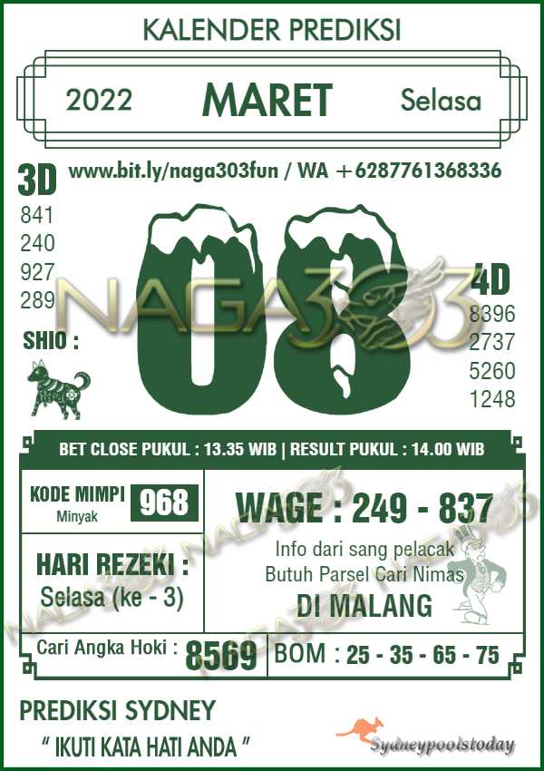 Prediksi Sydney Pools Selasa 08 Maret 2022 | Web Toto Naga303