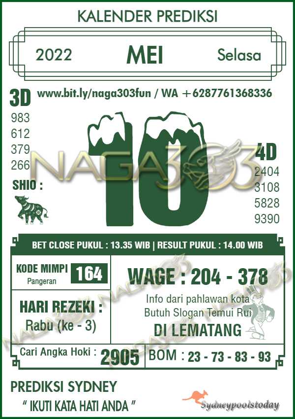Prediksi Sydney Pools Selasa 10 Mei 2022 | Web Toto Naga303