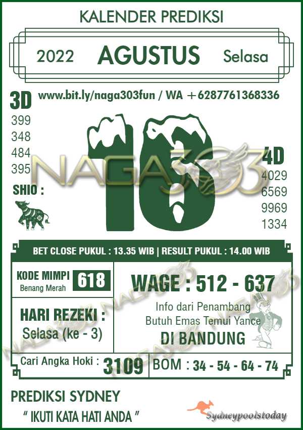 Prediksi Sydney Pools Selasa 16 Agustus 2022 | Web Toto Naga303
