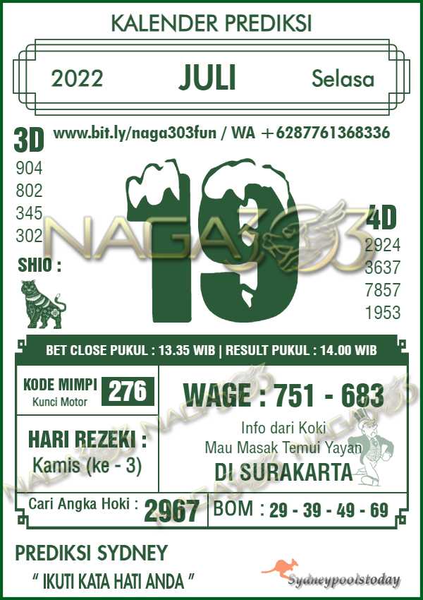 Prediksi Sydney Pools Selasa 19 Juli 2022 | Web Toto Naga303