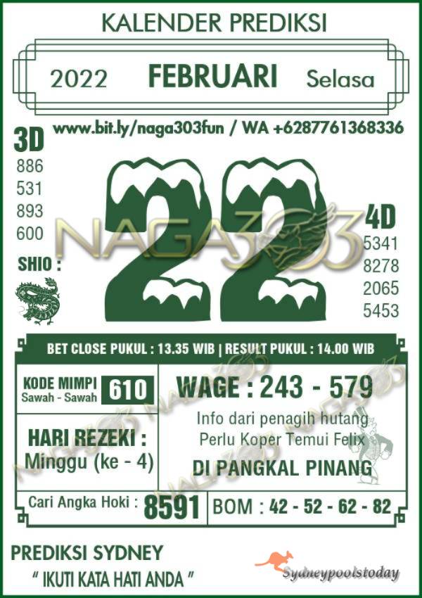 Prediksi Sydney Pools Selasa 22 Februari 2022
