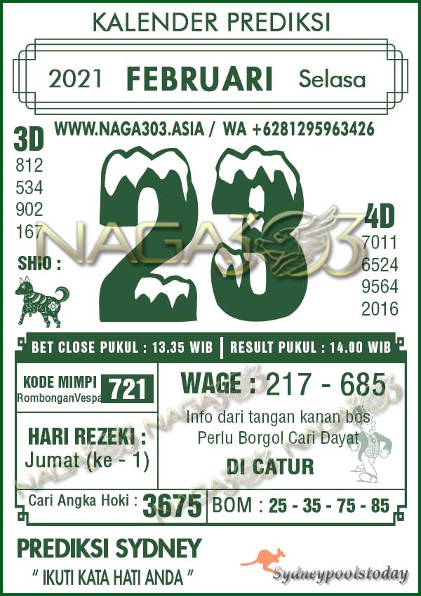 Prediksi Sydney Pools Selasa 23 Februari 2021
