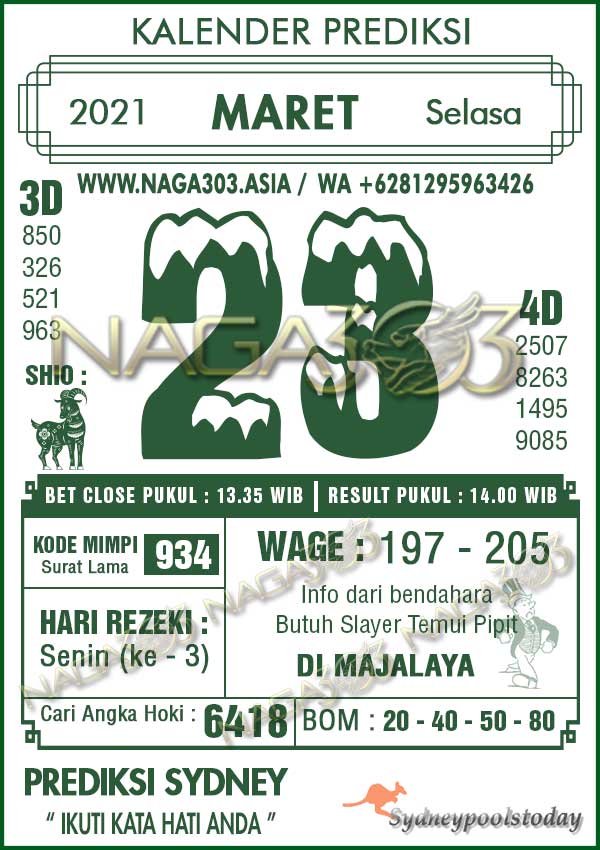 Prediksi Sydney Pools Selasa 23 Maret 2021