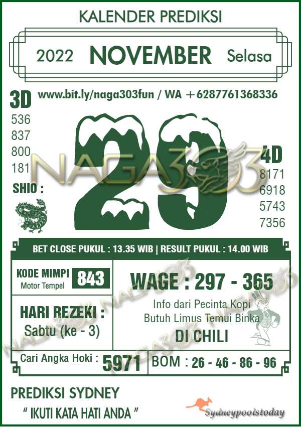 Prediksi Sydney Pools Selasa 29 November 2022