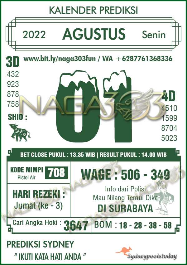Prediksi Sydney Pools Senin 01 Agustus 2022