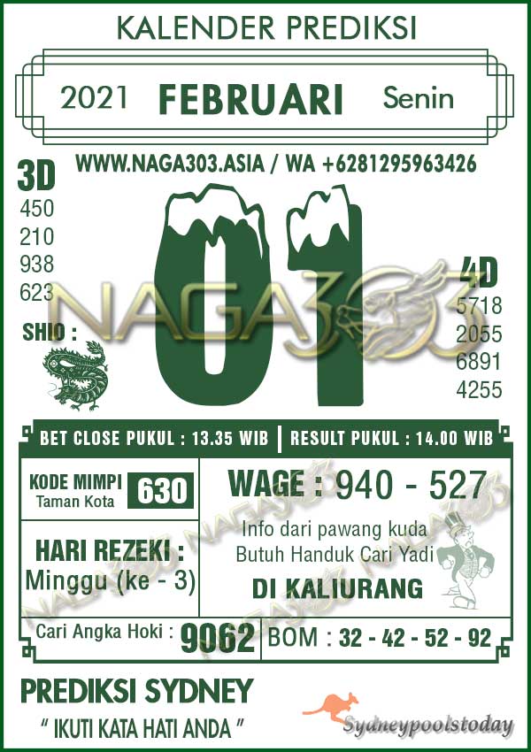 Prediksi Sydney Pools Senin 01 Februari 2021 | Web Toto Naga303