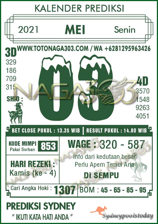 Prediksi Sydney Pools Senin 03 Mei 2021 | Web Toto Naga303