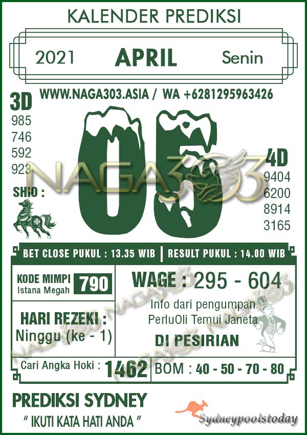 Prediksi Sydney Pools Senin 05 April 2021