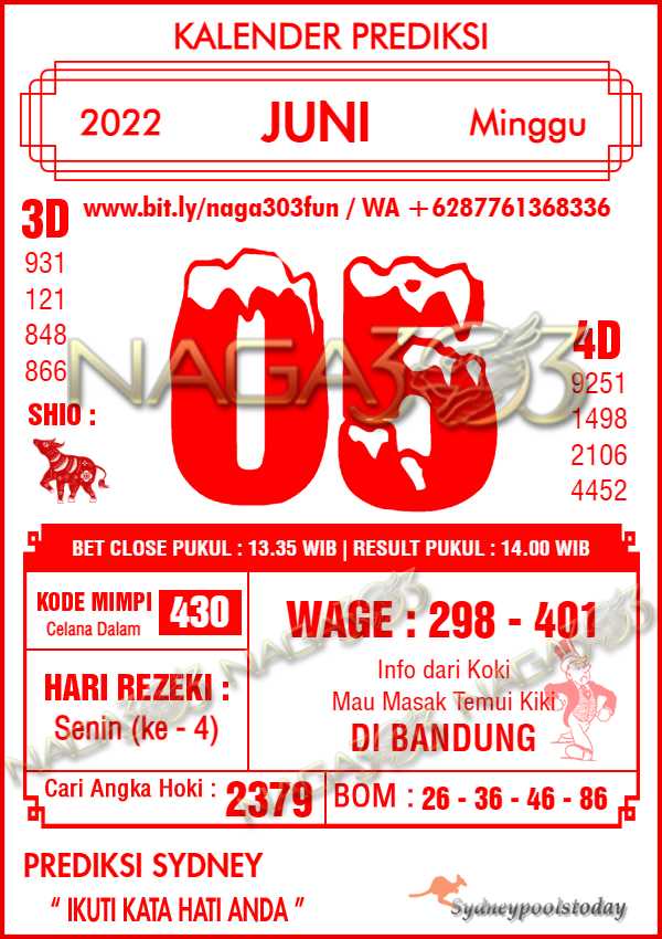 Prediksi Sydney Pools Senin 06 Juni 2022 | Web Toto Naga303