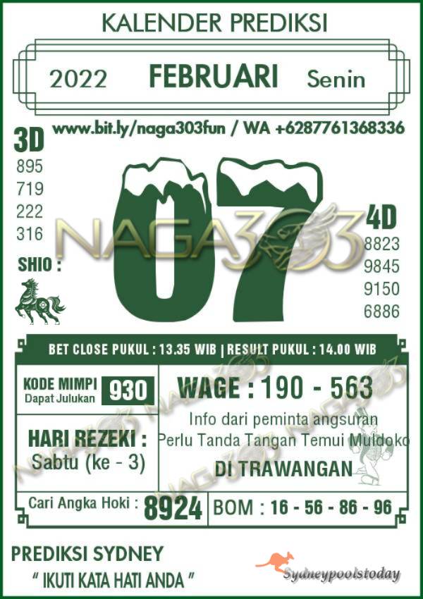 Prediksi Sydney Pools Senin 07 Februari 2022