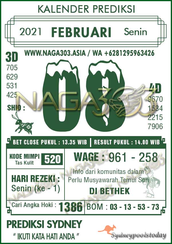 Prediksi Sydney Pools Senin 08 Februari 2021