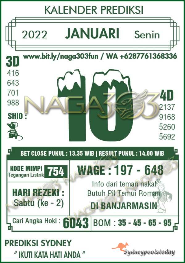 Prediksi Sydney Pools Senin 10 Januari 2022