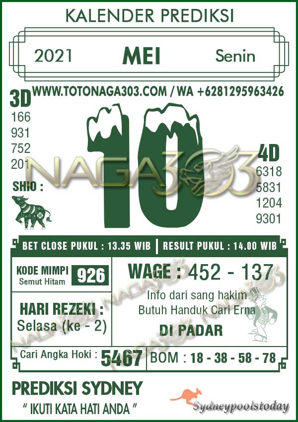 Prediksi Sydney Pools Senin 10 Mei 2021 | Web Toto Naga303