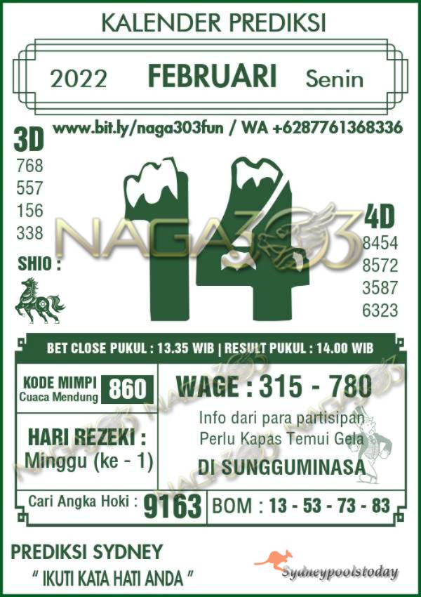 Prediksi Sydney Pools Senin 14 Februari 2022
