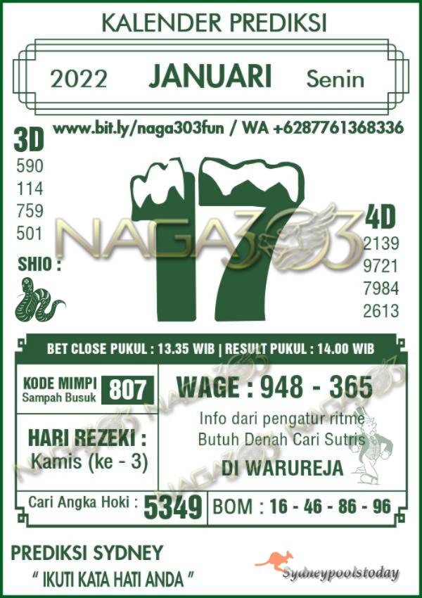Prediksi Sydney Pools Senin 17 Januari 2022