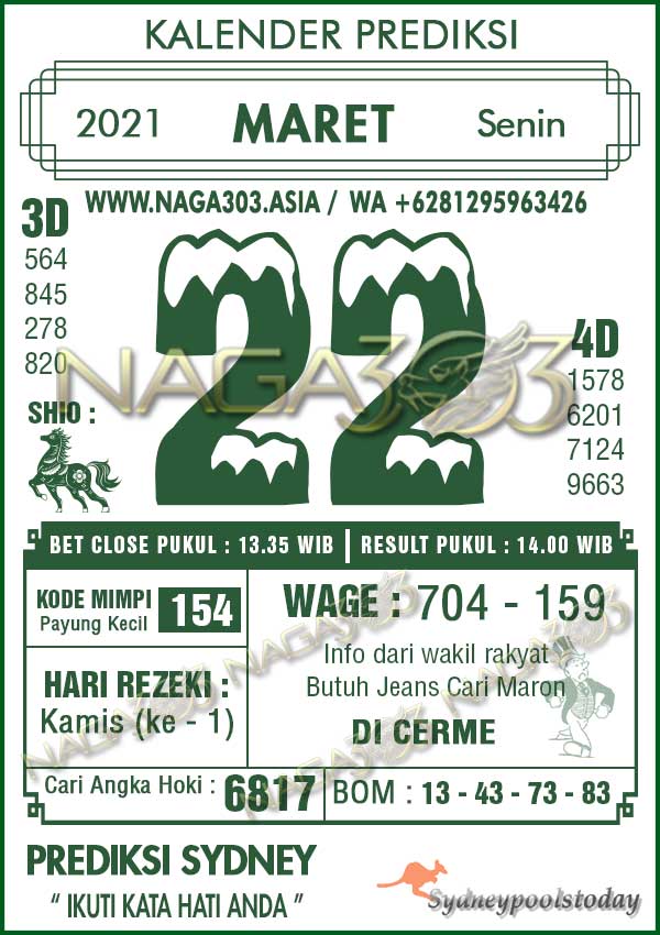 Prediksi Sydney Pools Senin 22 Maret 2021