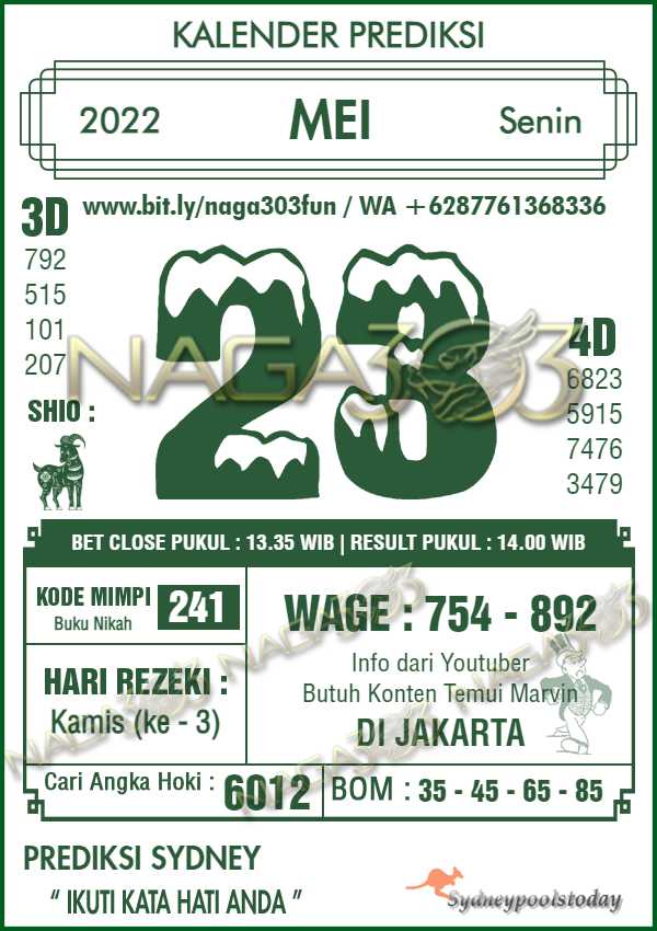 Prediksi Sydney Pools Senin 23 Mei 2022 | Web Toto Naga303