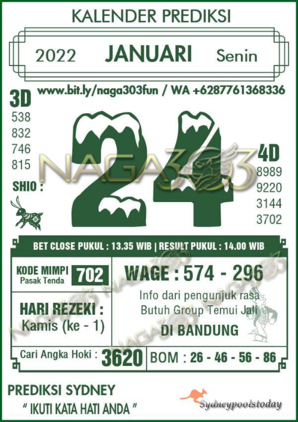 Prediksi Sydney Pools Senin 24 Januari 2022 | Web Toto Naga303