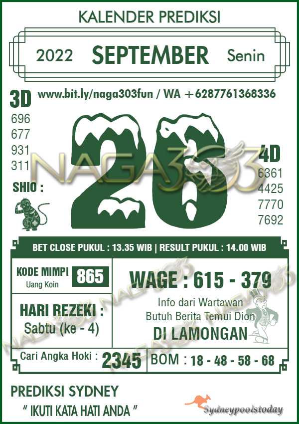 Prediksi Sydney Pools Senin 26 September 2022 | Web Toto Naga303