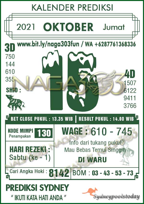 Prediksi SydneyPools Jumat 15 Oktober 2021 | Web Toto Naga303