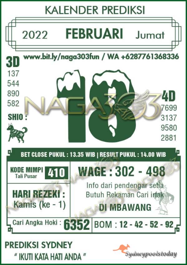 Prediksi SydneyPools Jumat 18 Februari 2022