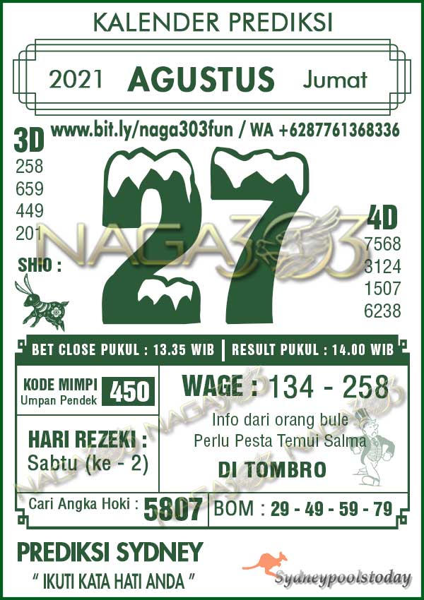 Prediksi SydneyPools Jumat 27 Agustus 2021