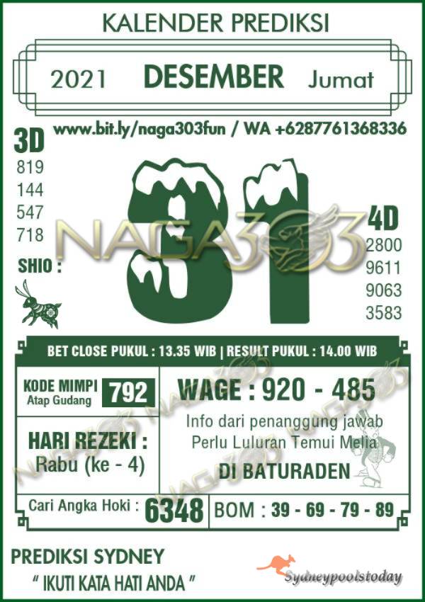 Prediksi SydneyPools Jumat 31 Desember 2021