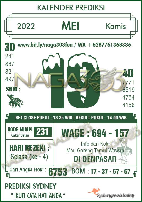 Prediksi SydneyPools Kamis 19 Mei 2022 | Web Toto Naga303