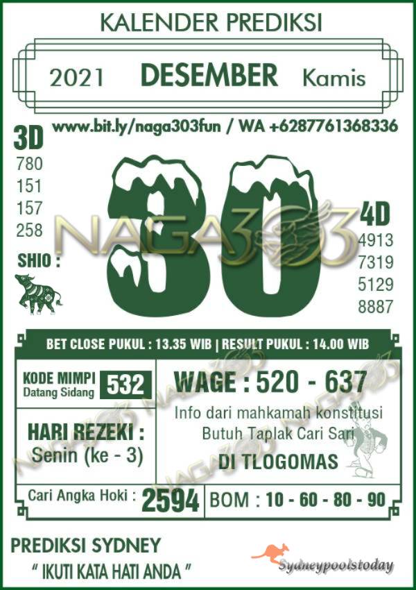 Prediksi SydneyPools Kamis 30 Desember 2021 | Web Toto Naga303