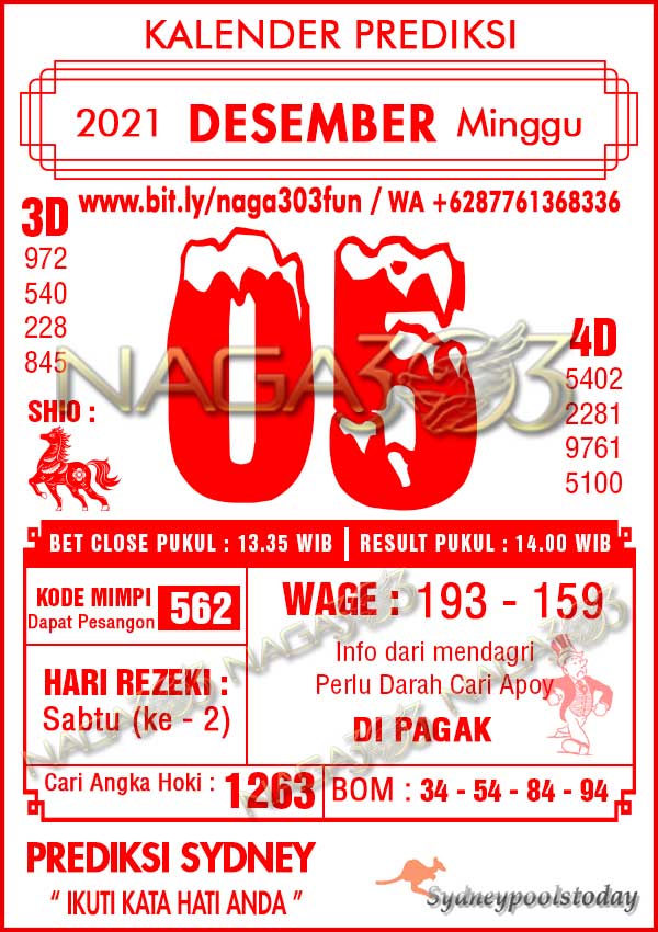 Prediksi SydneyPools Minggu 05 Desember 2021 | Web Toto Naga303