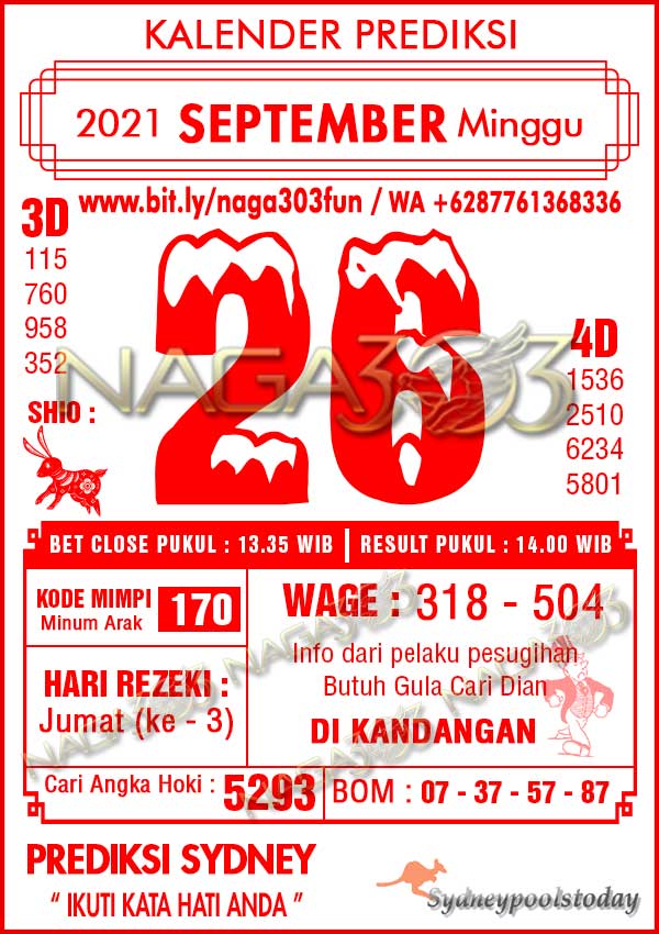 Prediksi SydneyPools Minggu 26 September 2021